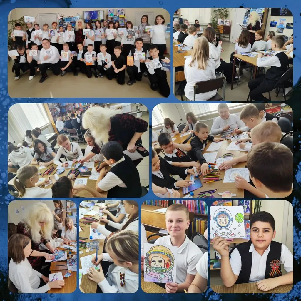 В детской библиотеке в рамках клуба «Юные патриоты» прошла тематическая демонстрация творческих работ «Космическая акварель», приуроченная Дню космонавтики и 65-летию первого полёта Ю. А. Гагарина в космос. Библиотекарь познакомила школьников с историей освоения космоса и интересными фактами из биографии первого космонавта, мероприятие сопровождалось кадрами документальной хроники о первом полёте, а мультимедийные видеоклипы позволили ребятам «отправиться» в путешествие по Вселенной и открыть для себя завораживающий мир космоса.