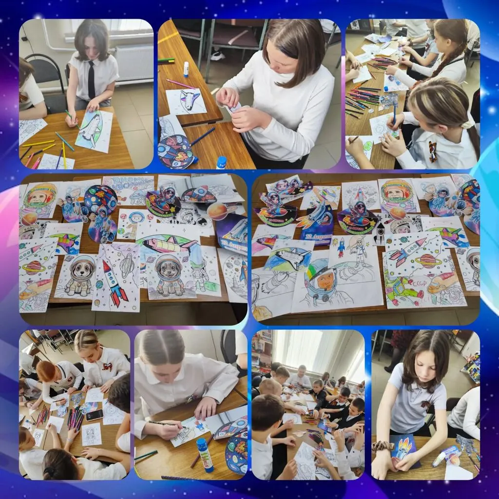 Участники выполнили тематическое задание «Собери планеты», ответили на вопросы познавательной викторины «Герои космоса» и приняли участие в мастер-классе «Космический пейзаж», создав собственные «космические» призы. Дополнила атмосферу книжная выставка «Покорители космоса» с энциклопедиями и научно-популярными изданиями об истории космонавтики, а особую яркость событию придали художественные работы юных художников ДХШ г. Михайловска - цветовые палитры красок и оригинальные космические сюжеты с изображениями ракет, космических кораблей, планет Солнечной системы и космонавтов, каждая из картин оказалась по-настоящему уникальной и продемонстрировала богатство детской фантазии - словно маленькое путешествие сквозь звёздные просторы.